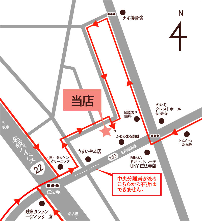 ※「がじゅまる珈琲店」駐車場は通り抜けできない場合がございますので、